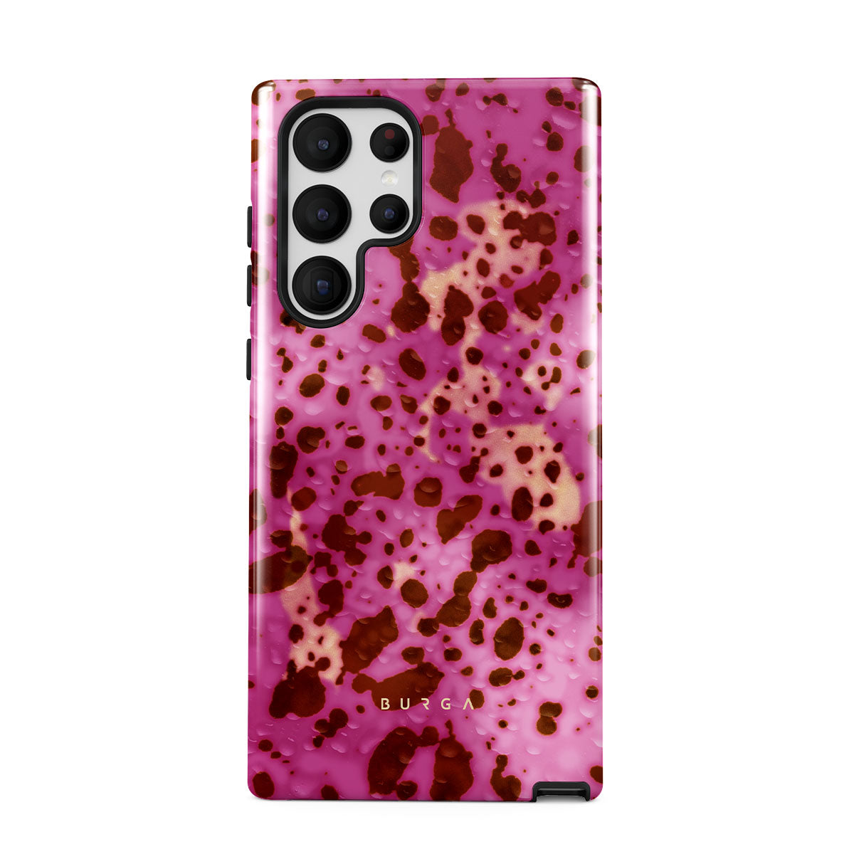 Este design contém: estampa de leopardo rosa, fundo magenta, estampa de animal.