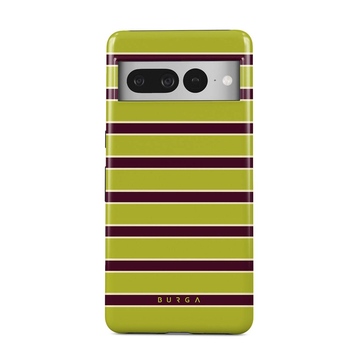 Este design contém: listras horizontais grossas em verde-limão e bordô.