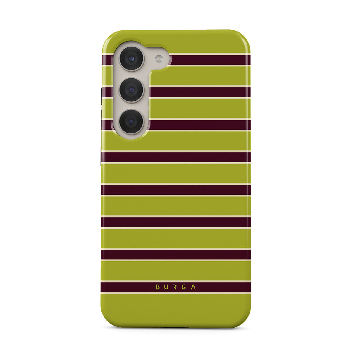 Este design contém: listras horizontais grossas em verde-limão e bordô.
