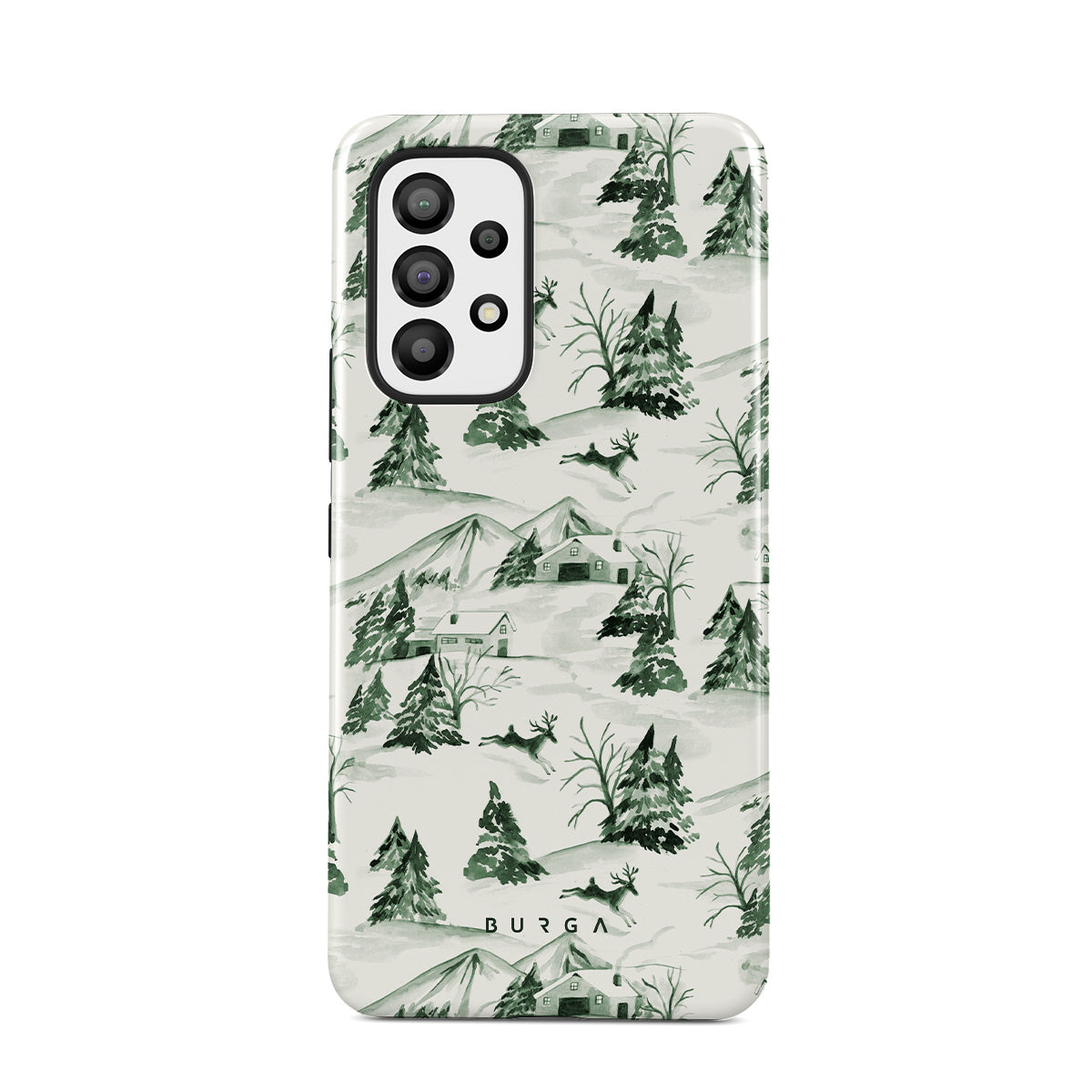 Este design contém: cena de floresta de inverno, pinheiros, paisagem coberta de neve, verde e branco, padrão natural, Natal na floresta, árvores perenes, estilo de ilustração vintage