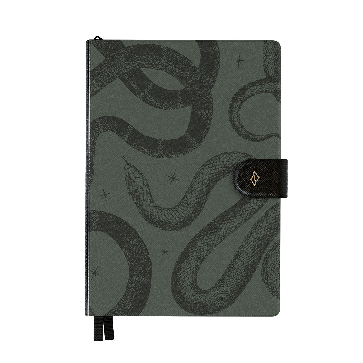 Envolvida numa elegante pele Saffiano vegana e presa com um elegante fecho magnético, é suficientemente durável para aguentar os derrames de café e os pequenos momentos desastrados da vida.