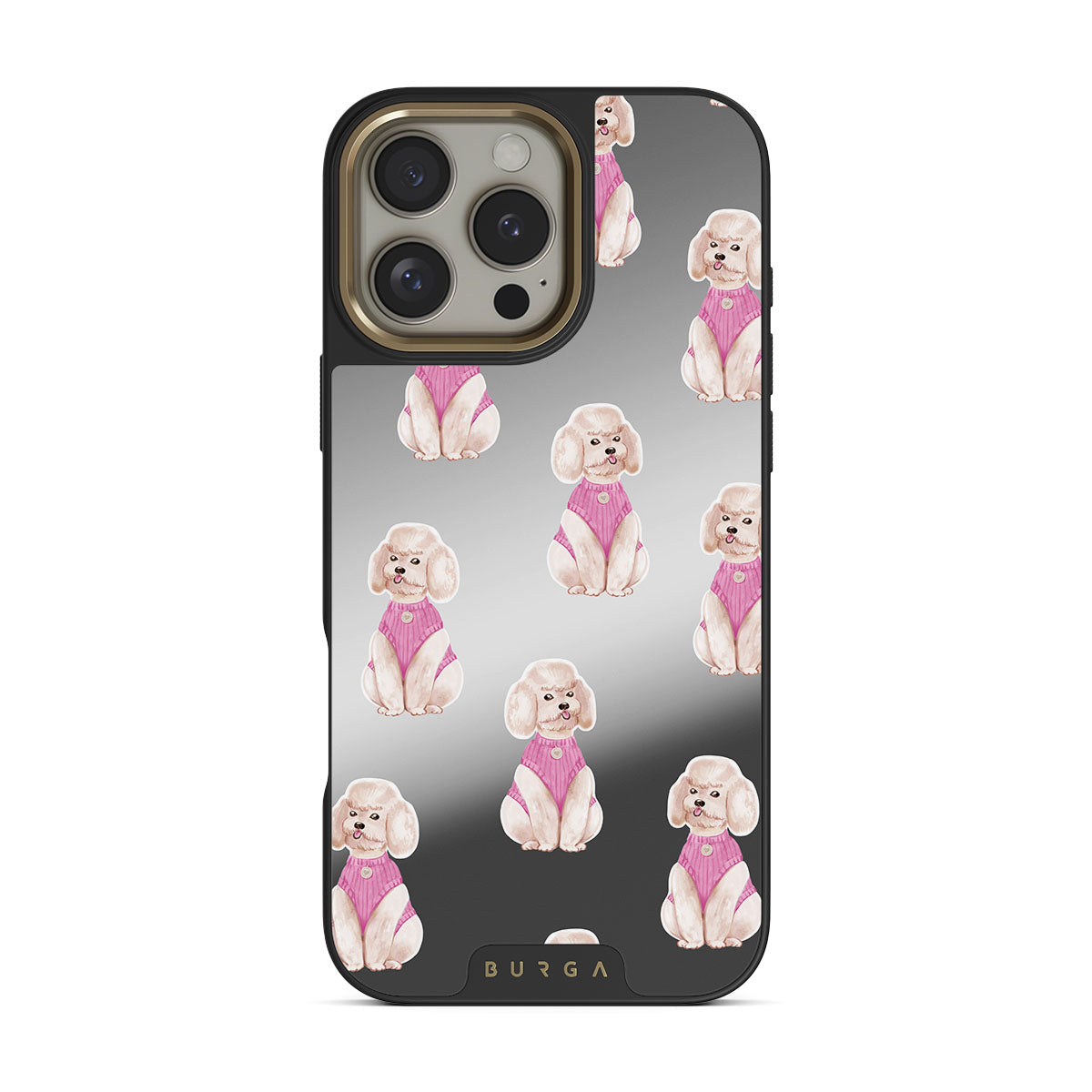 Este design contém: caniches, cães, mascotes, detalhes cor-de-rosa, espelho