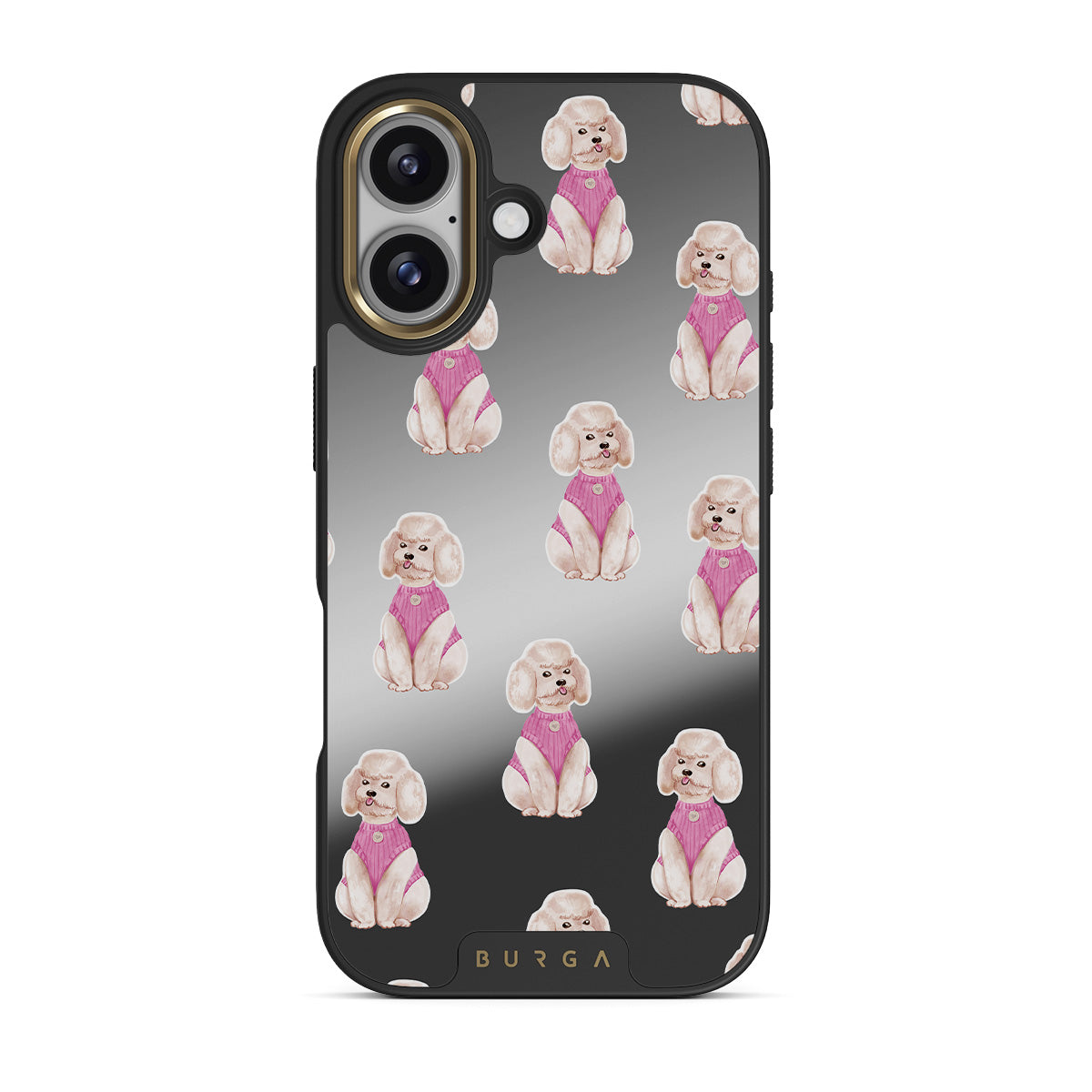 Este design contém: caniches, cães, mascotes, detalhes cor-de-rosa, espelho