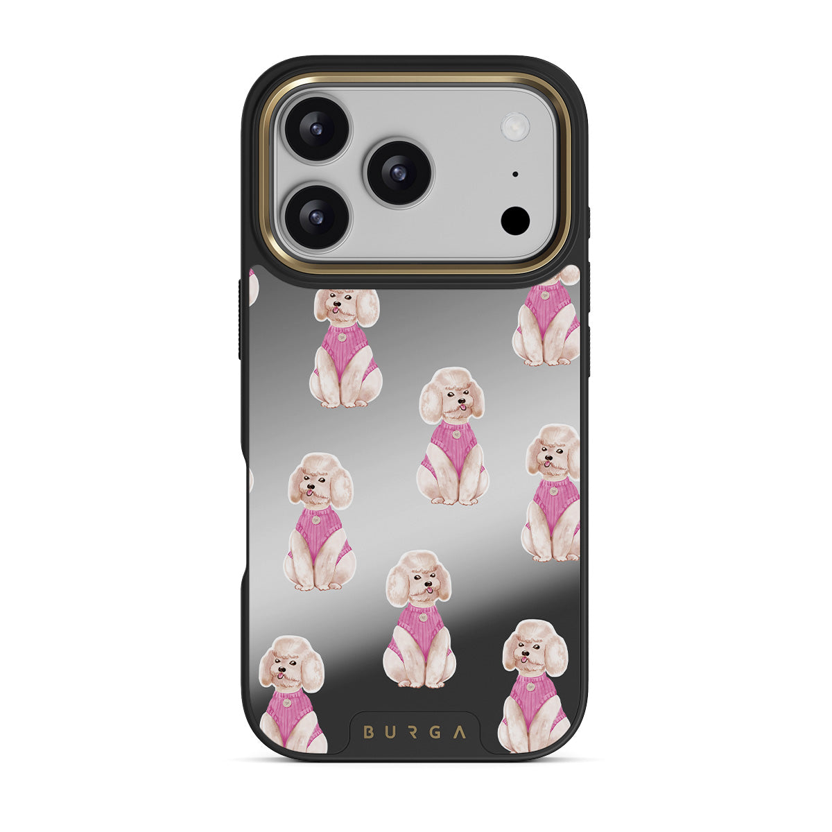 Este design contém: caniches, cães, mascotes, detalhes cor-de-rosa, espelho