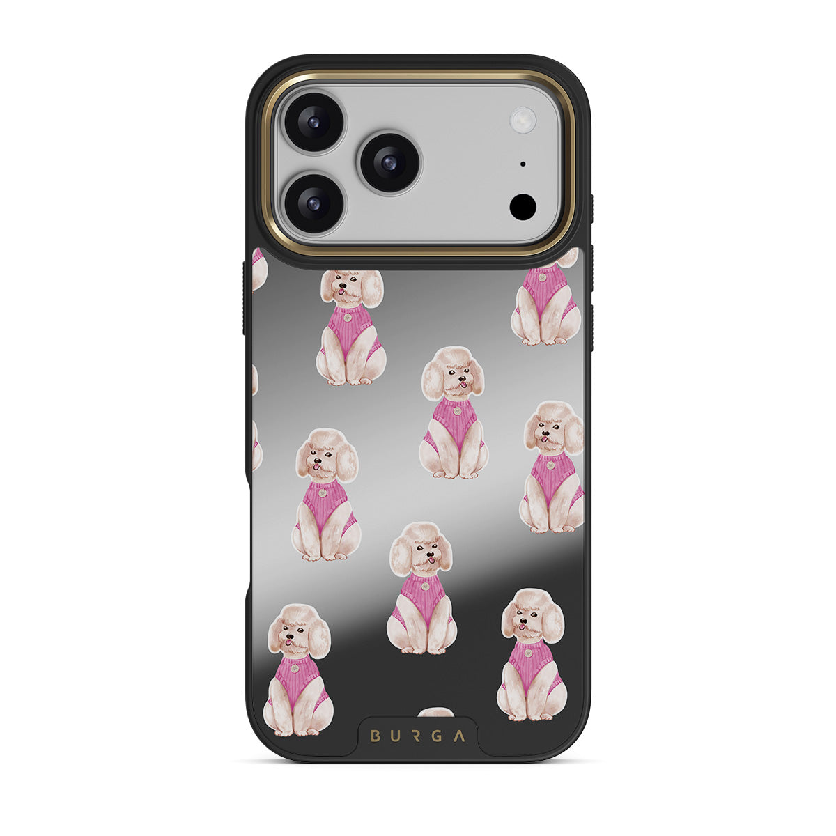 Este design contém: caniches, cães, mascotes, detalhes cor-de-rosa, espelho