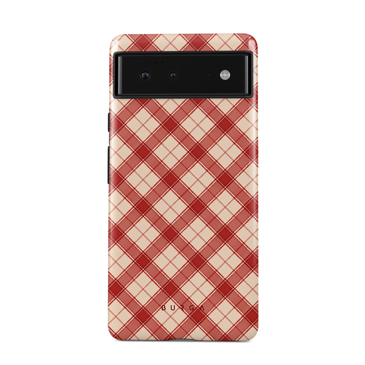 Este design contém: xadrez vermelho e marrom, padrão de xadrez diagonal, tartã clássico, estilo buffalo check, xadrez natalino tradicional