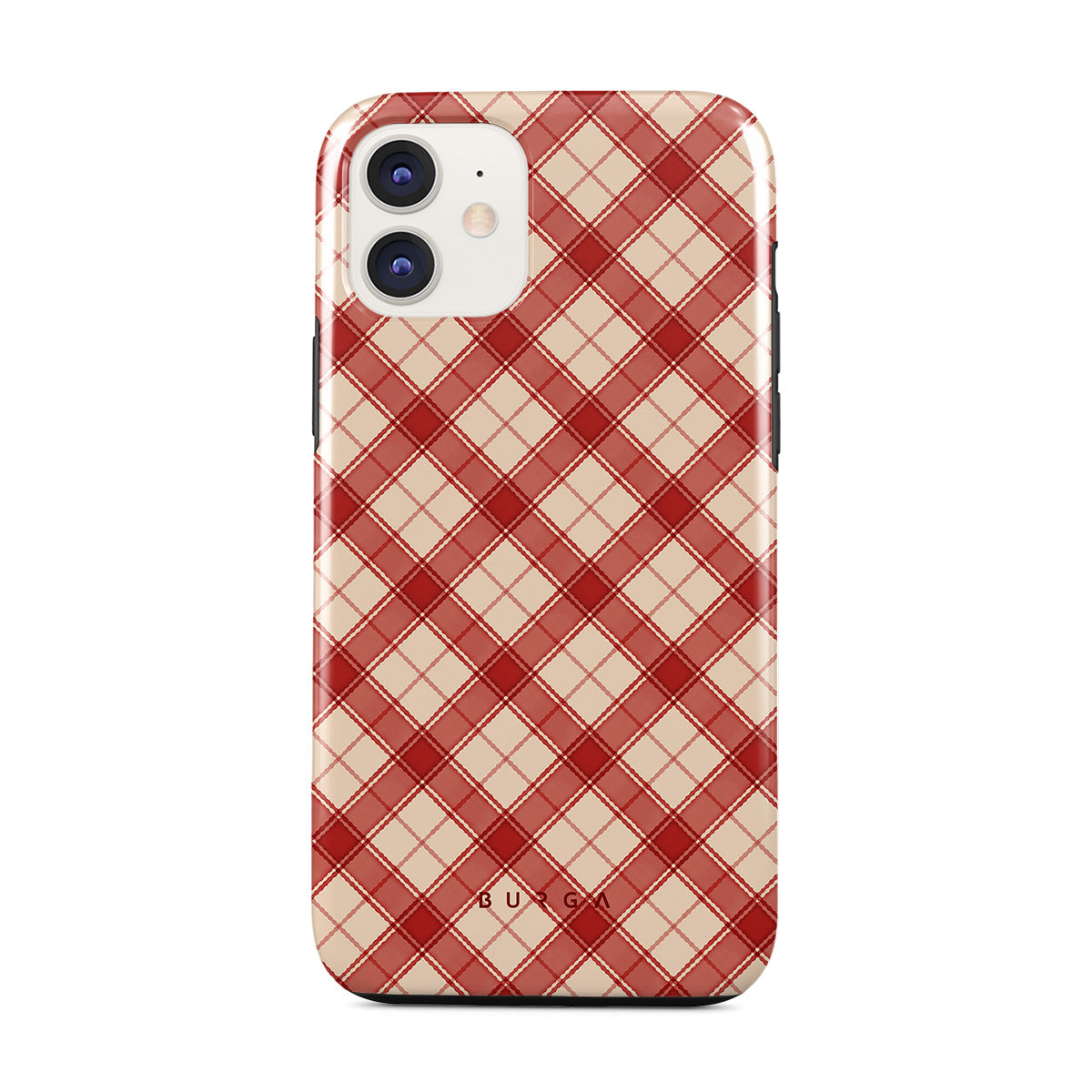 Este design contém: xadrez vermelho e marrom, padrão de xadrez diagonal, tartã clássico, estilo buffalo check, xadrez natalino tradicional