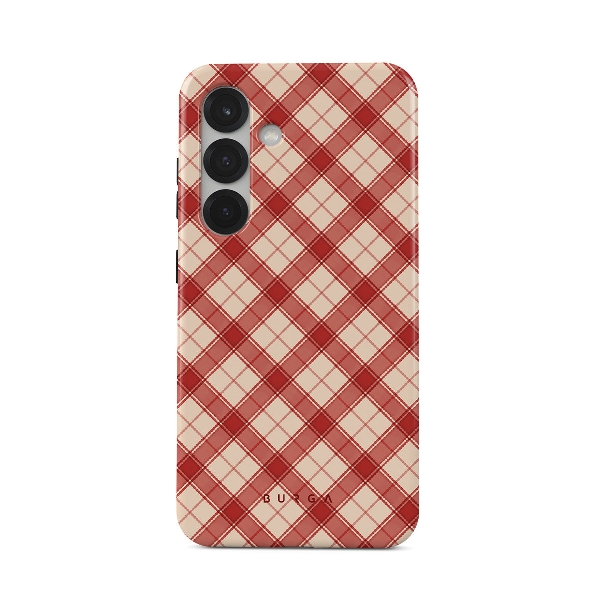 Este design contém: xadrez vermelho e marrom, padrão de xadrez diagonal, tartã clássico, estilo buffalo check, xadrez natalino tradicional