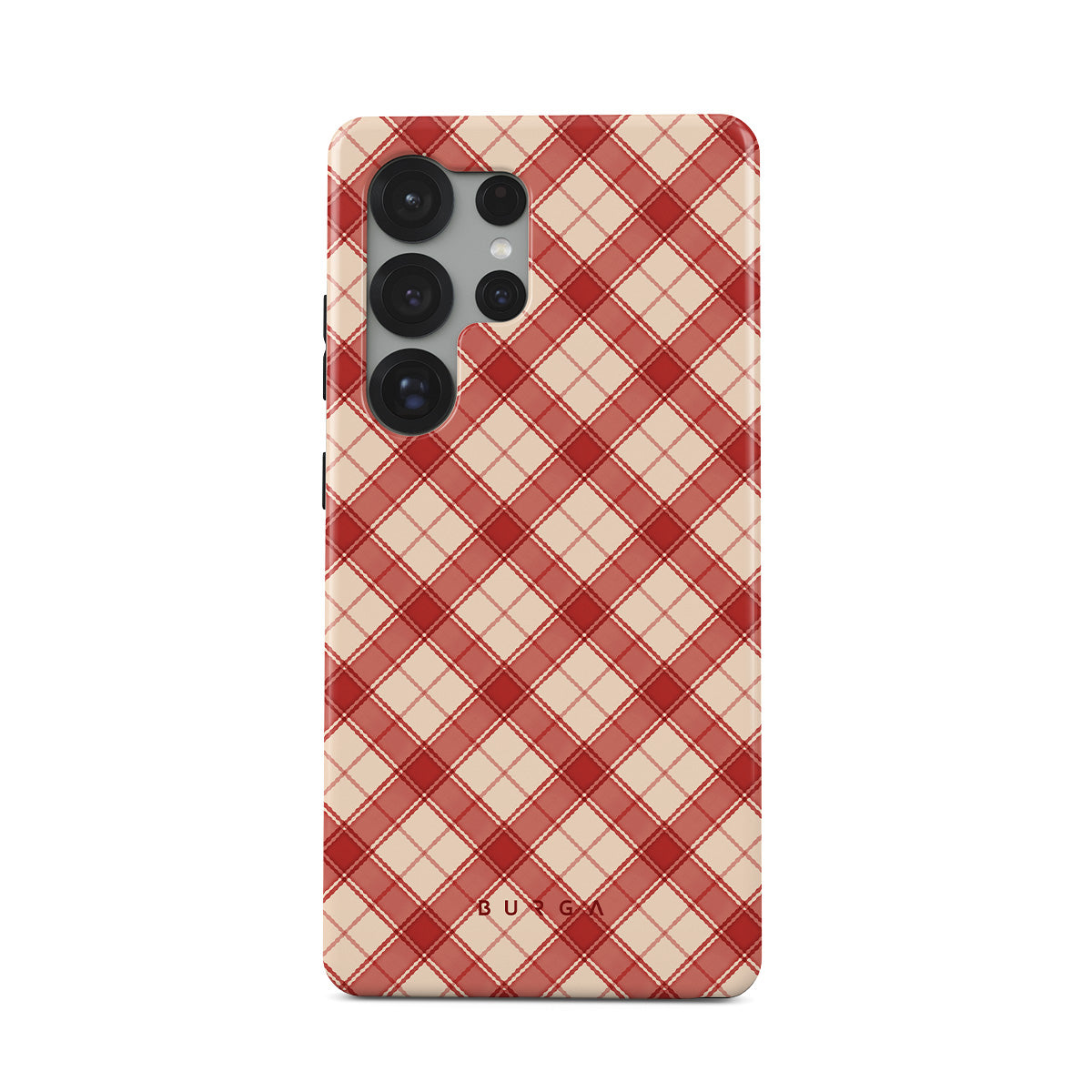 Este design contém: xadrez vermelho e marrom, padrão de xadrez diagonal, tartã clássico, estilo buffalo check, xadrez natalino tradicional