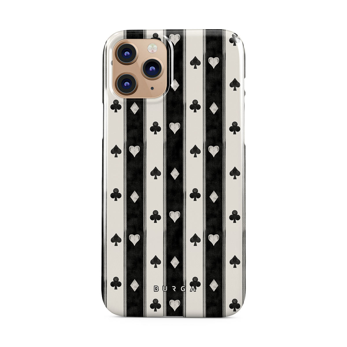 Este design contém: riscas preto e branco, corações, naipes de cartas, estilo vintage