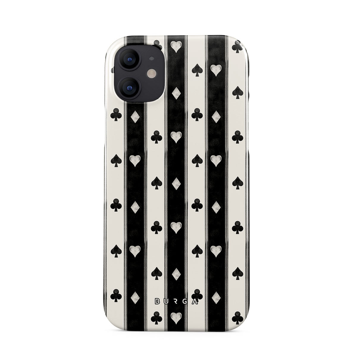 Este design contém: riscas preto e branco, corações, naipes de cartas, estilo vintage
