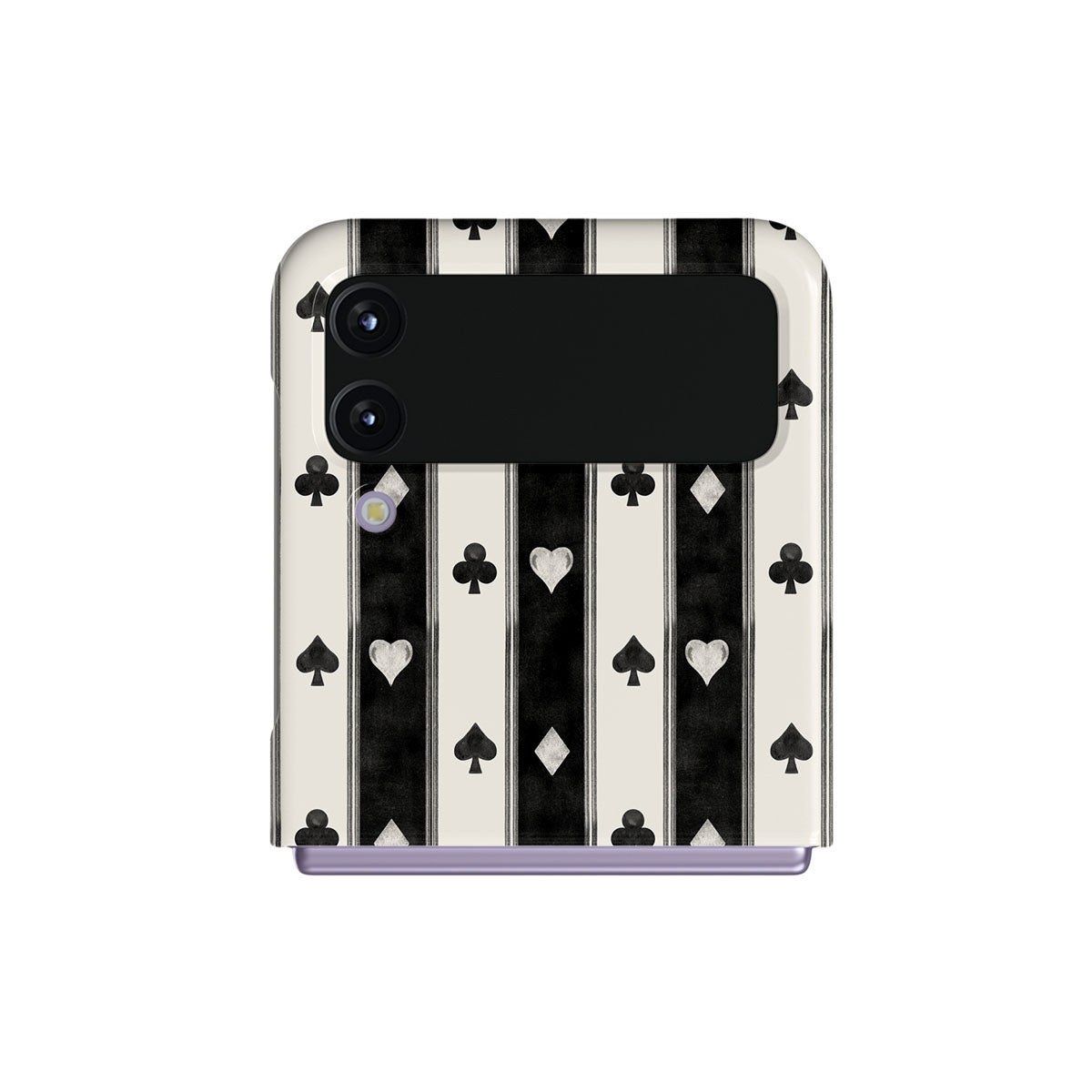Este design contém: riscas preto e branco, corações, naipes de cartas, estilo vintage