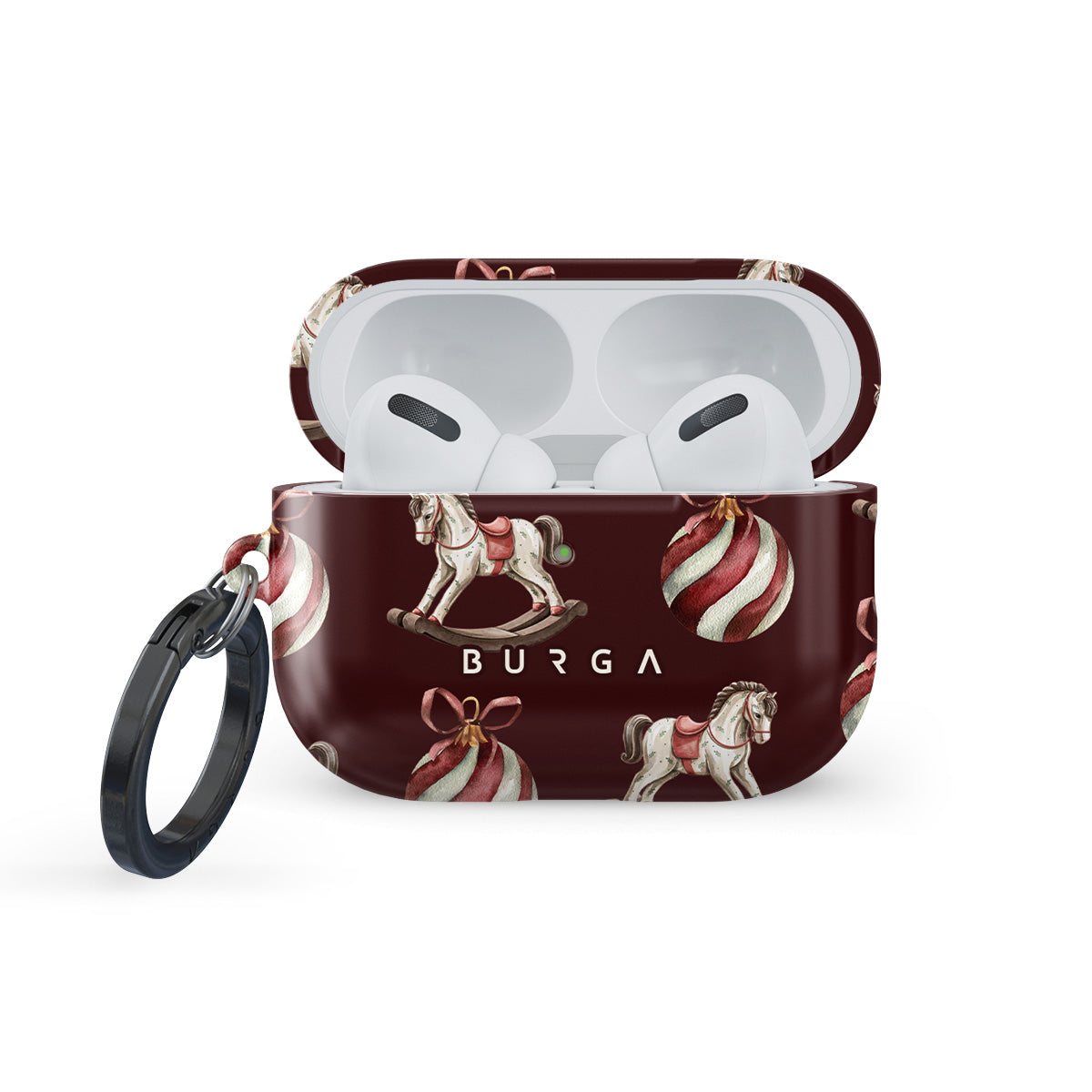 Este design contém: cavalos de baloiço, enfeites, vermelho, padrão de Natal..