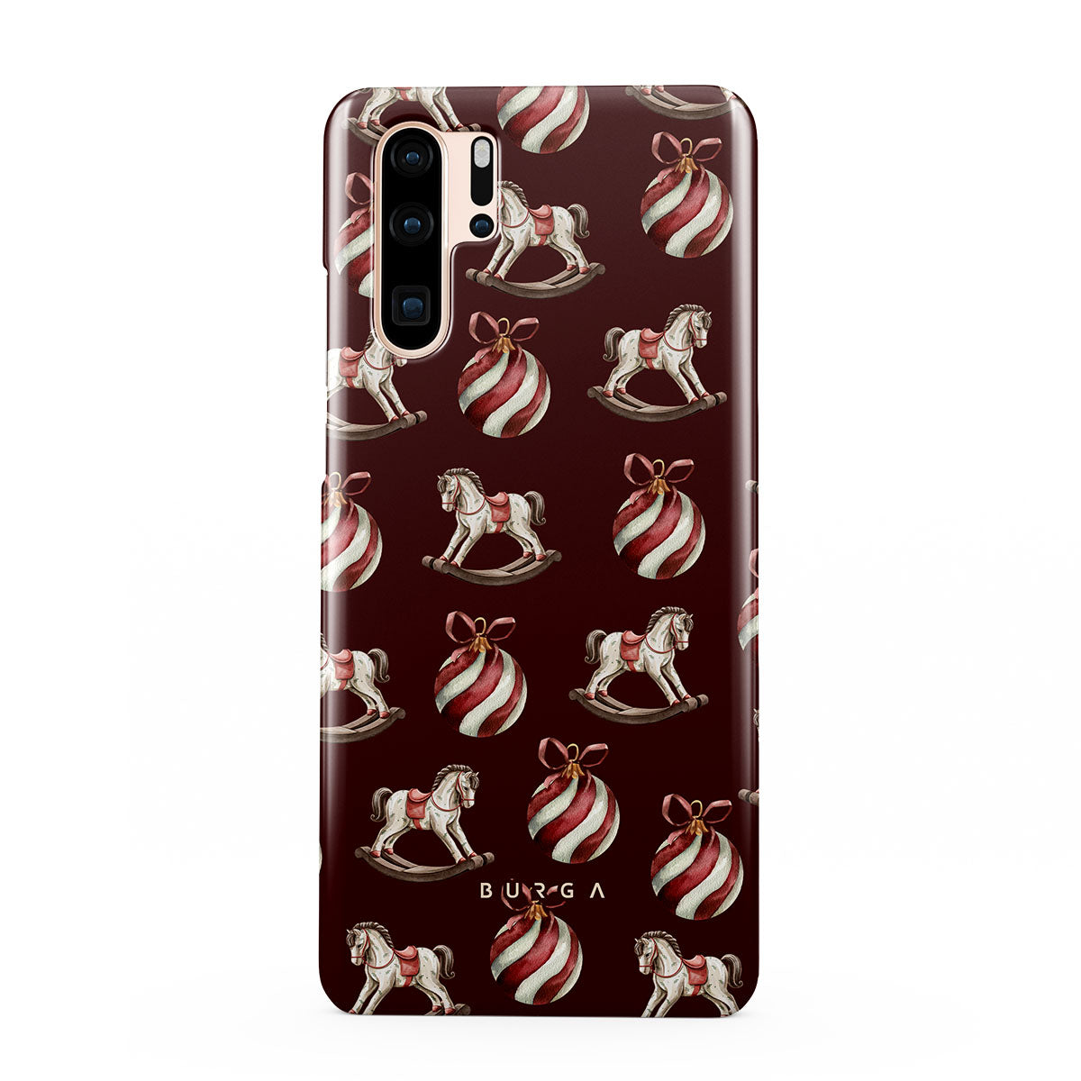 Este design contém: cavalos de baloiço, enfeites, vermelho, padrão de Natal..