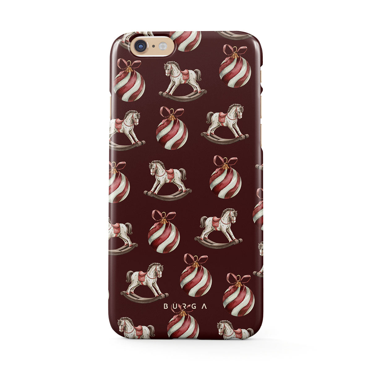 Este design contém: cavalos de baloiço, enfeites, vermelho, padrão de Natal..