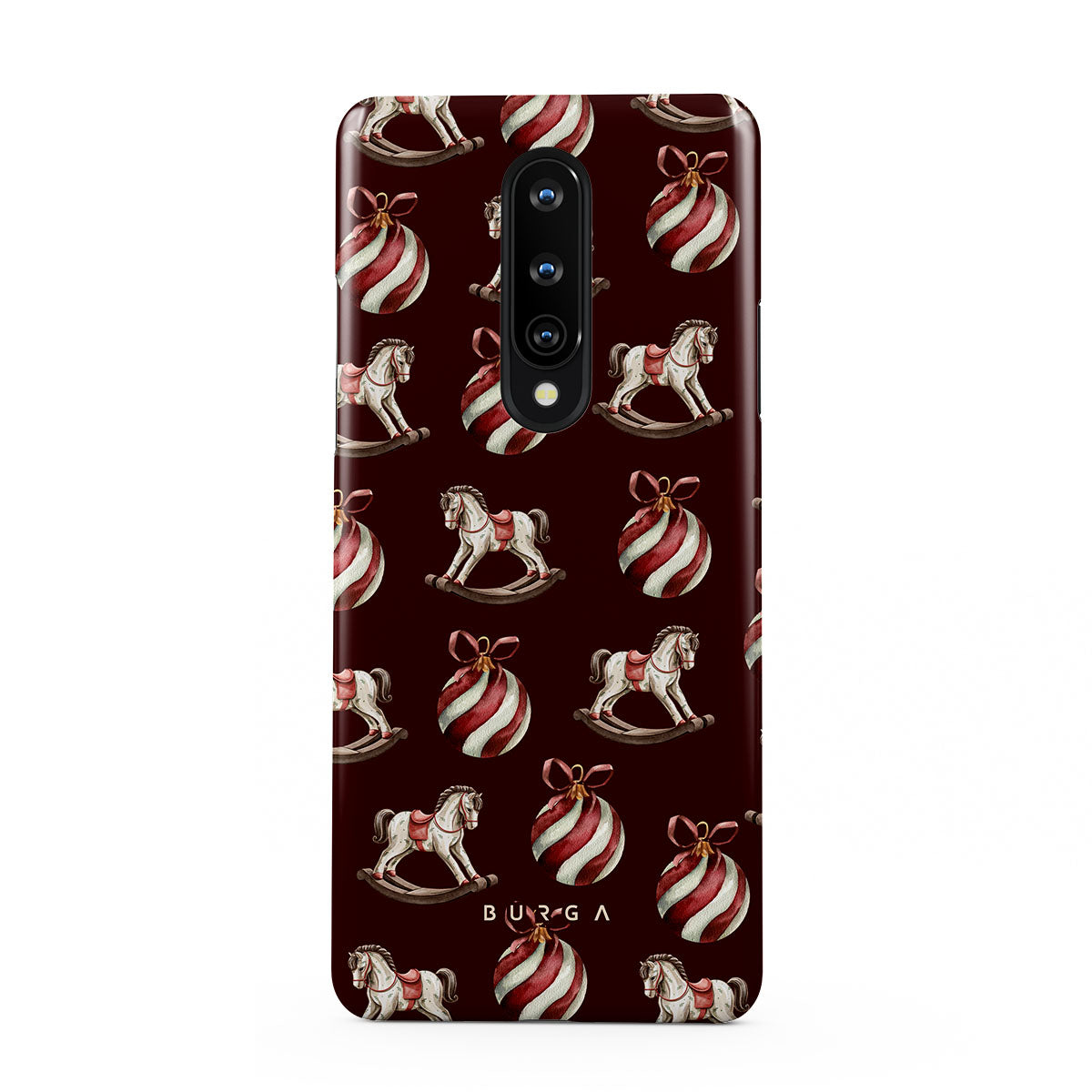Este design contém: cavalos de baloiço, enfeites, vermelho, padrão de Natal..
