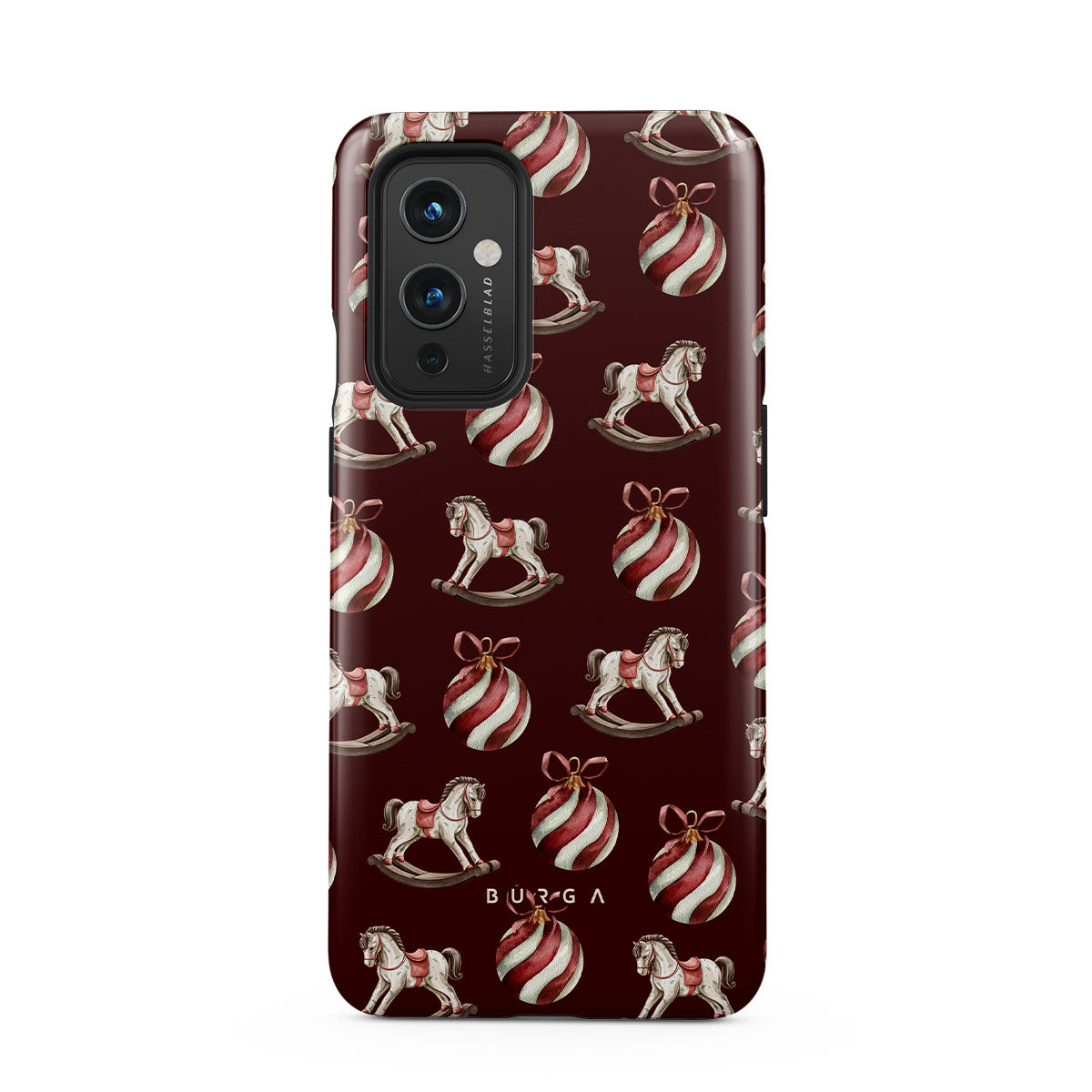 Este design contém: cavalos de baloiço, enfeites, vermelho, padrão de Natal..