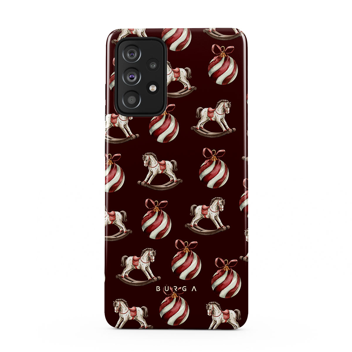 Este design contém: cavalos de baloiço, enfeites, vermelho, padrão de Natal..