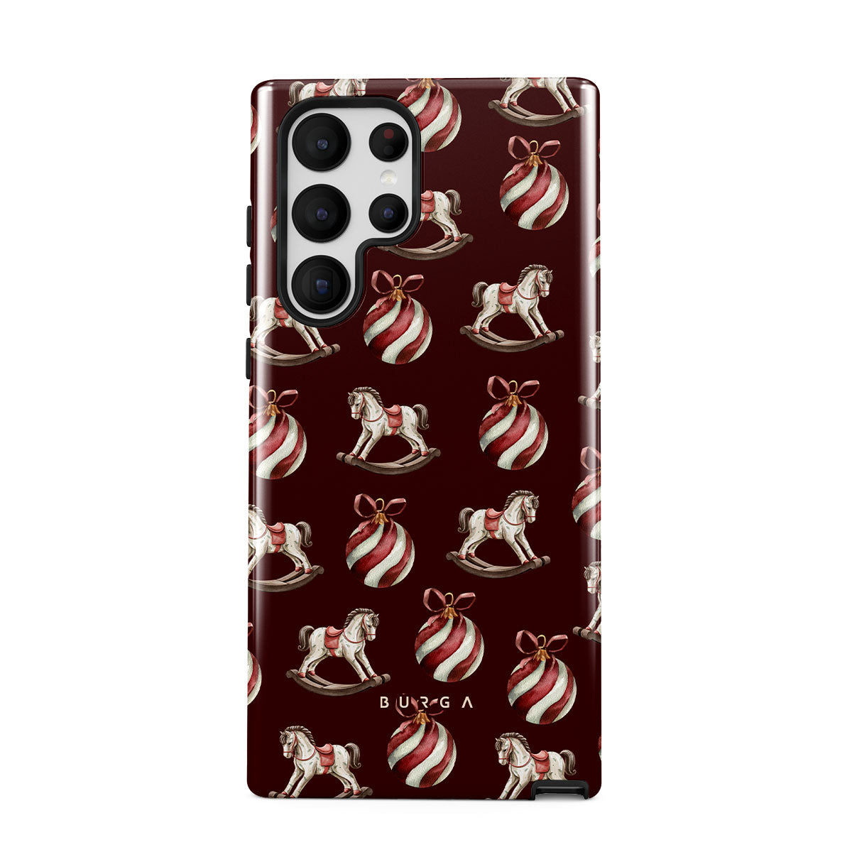Este design contém: cavalos de baloiço, enfeites, vermelho, padrão de Natal..
