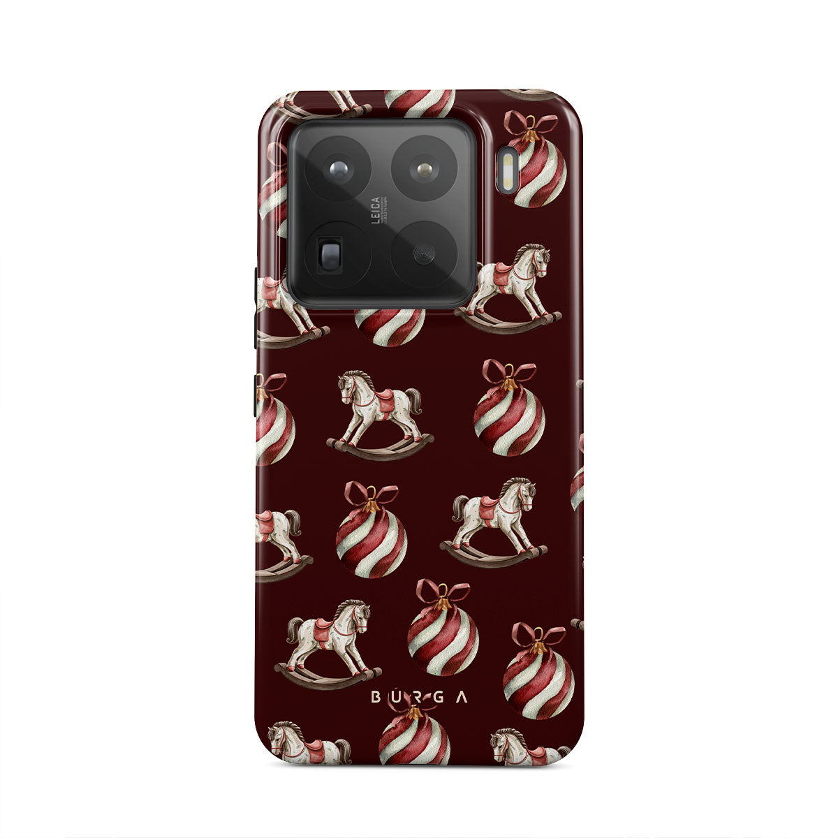 Este design contém: cavalos de baloiço, enfeites, vermelho, padrão de Natal..