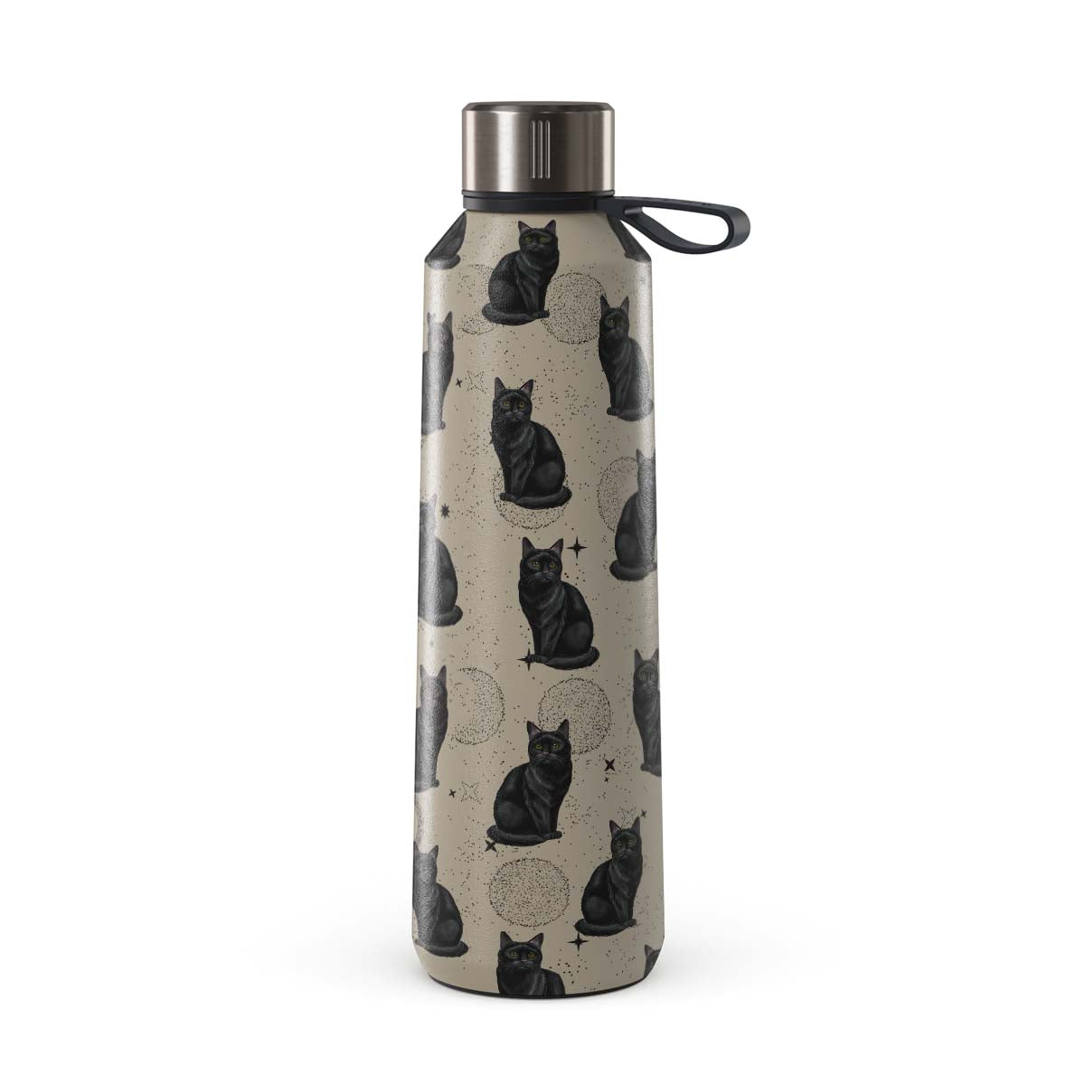 Este design contém: gatos pretos, símbolos místicos.
