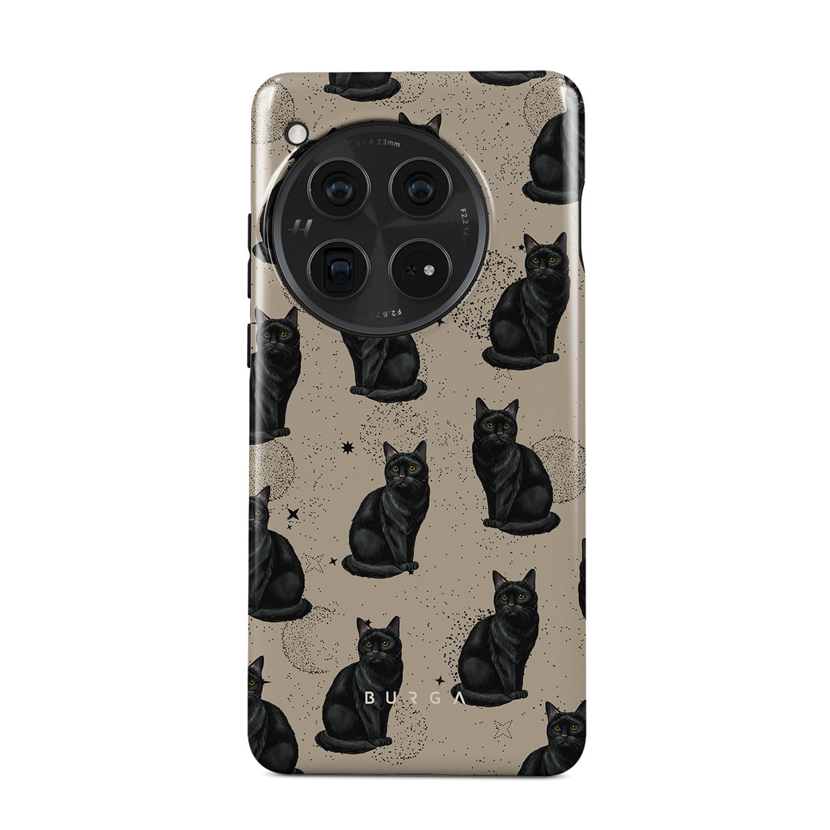 Este design contém: gatos pretos, símbolos místicos.