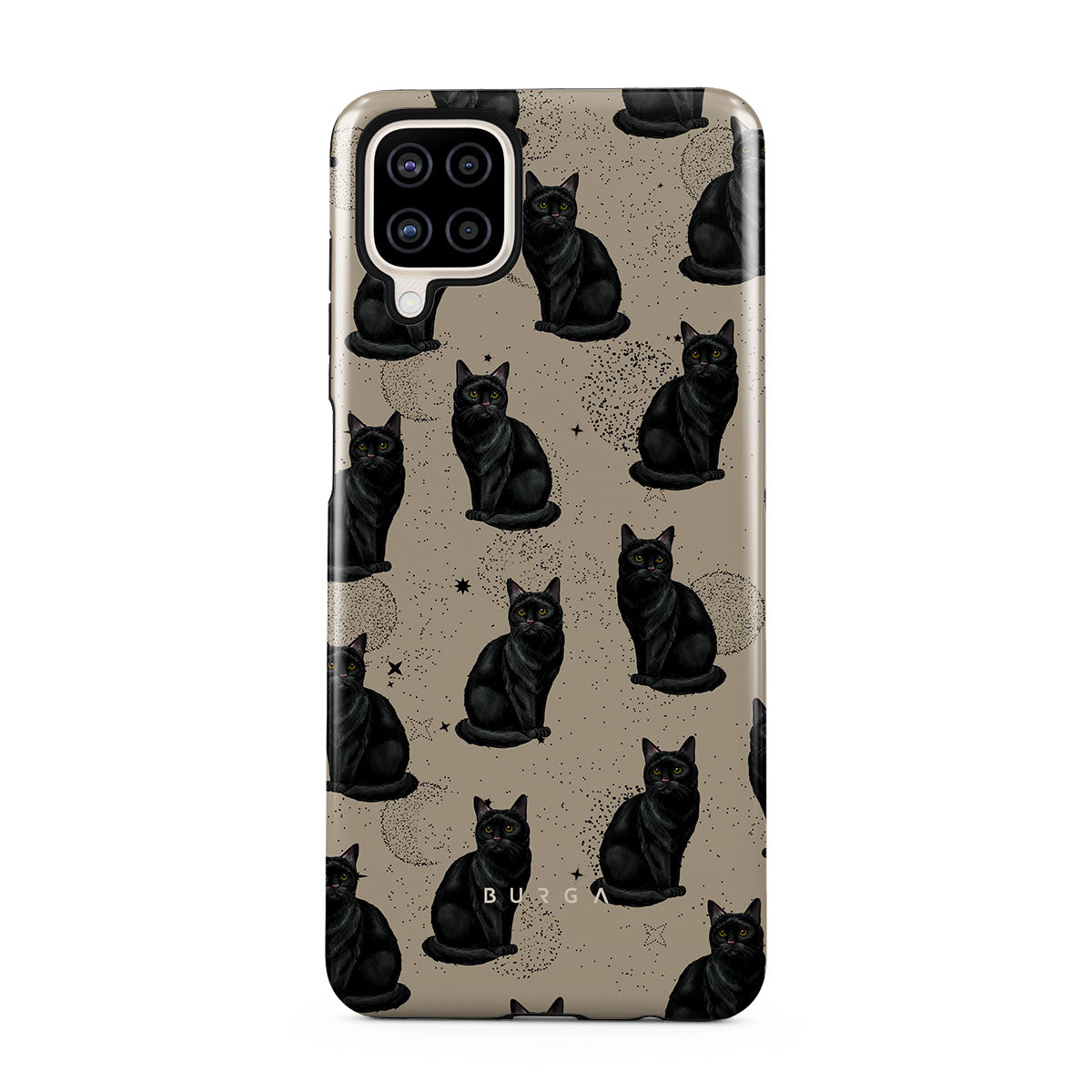 Este design contém: gatos pretos, símbolos místicos.