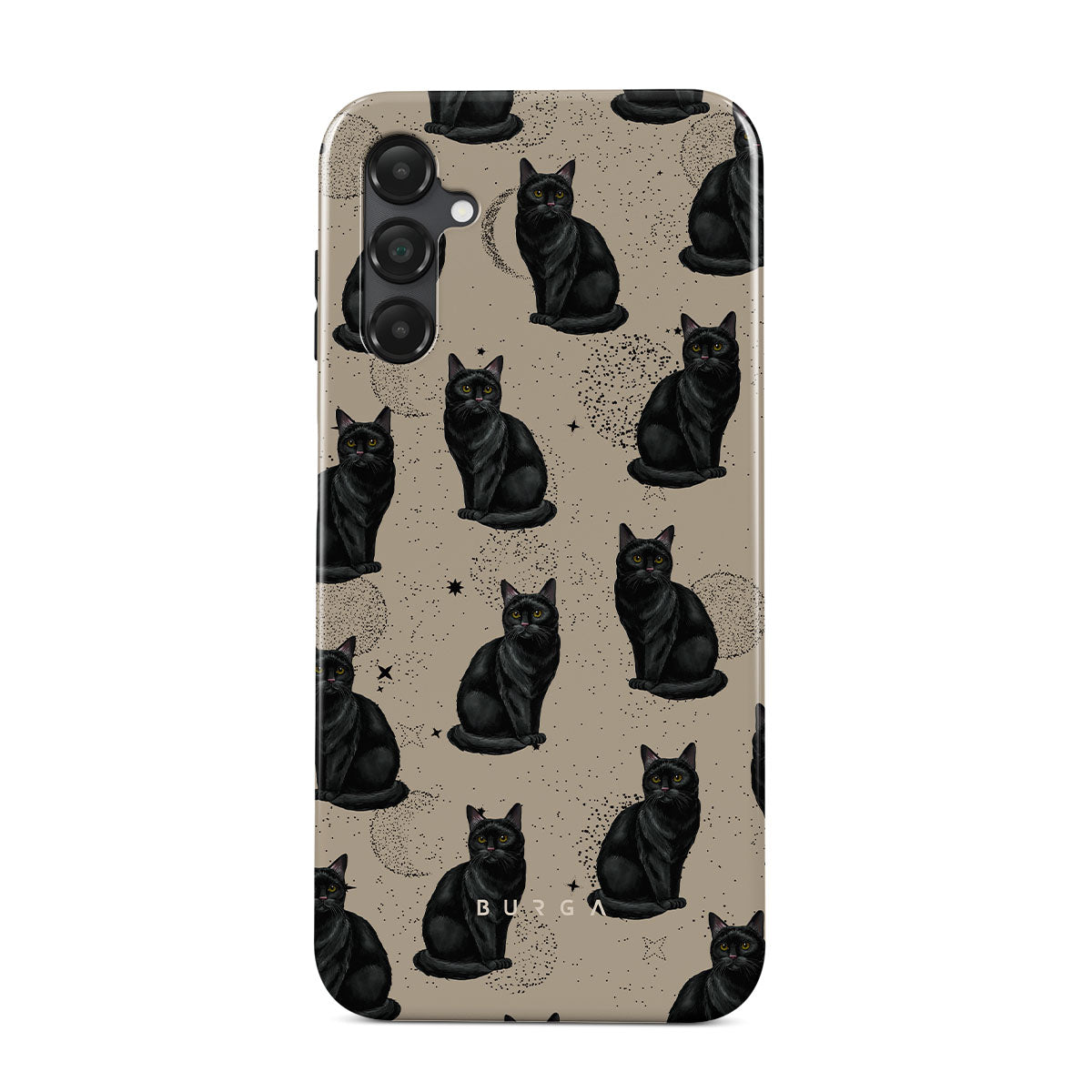 Este design contém: gatos pretos, símbolos místicos.