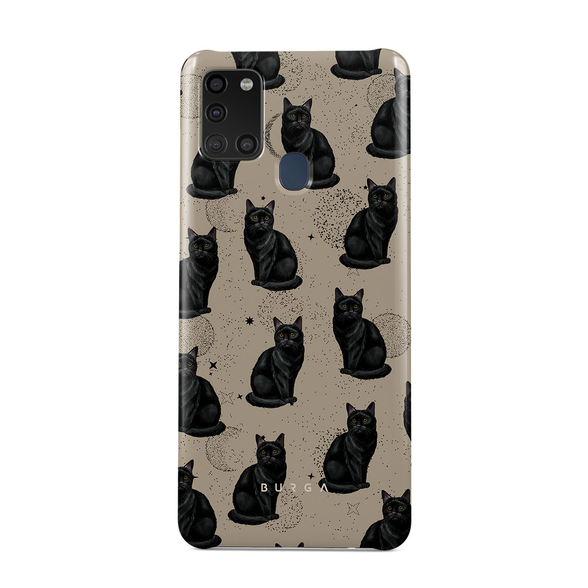 Este design contém: gatos pretos, símbolos místicos.