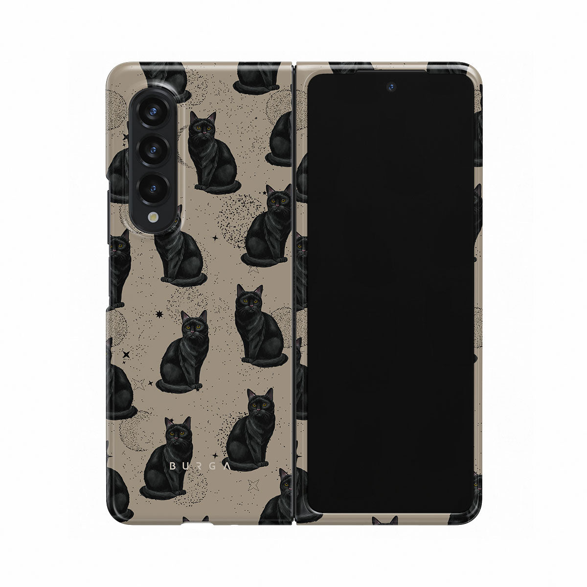 Este design contém: gatos pretos, símbolos místicos.
