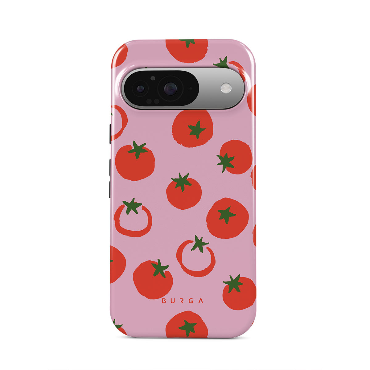 Este design contém:Tomates, cores vibrantes vermelhas e rosas.