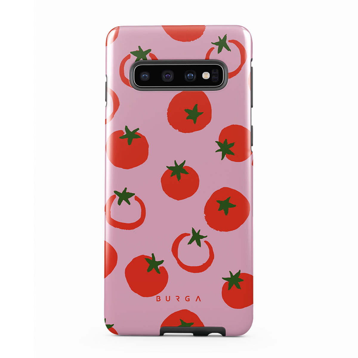 Este design contém:Tomates, cores vibrantes vermelhas e rosas.