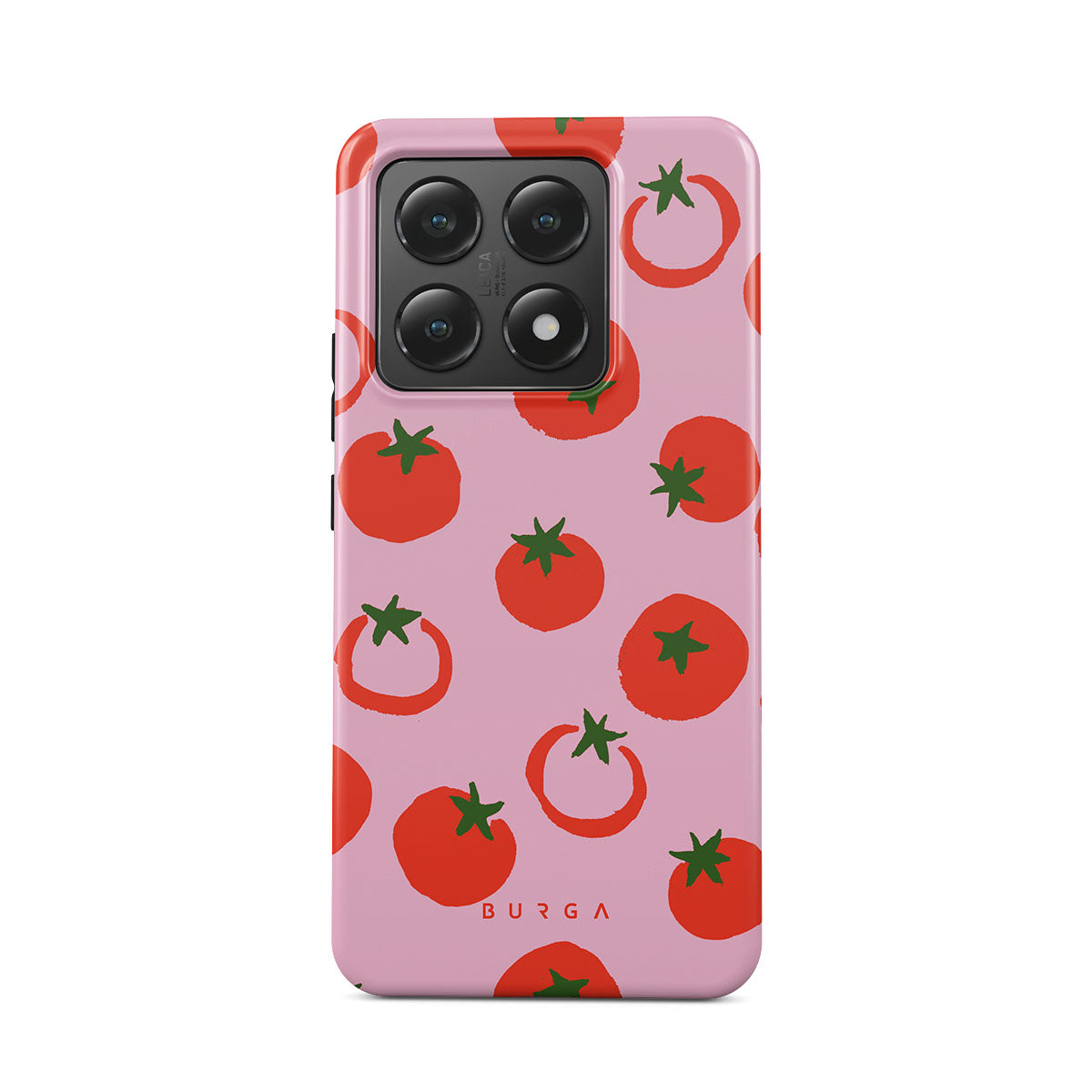 Este design contém:Tomates, cores vibrantes vermelhas e rosas.
