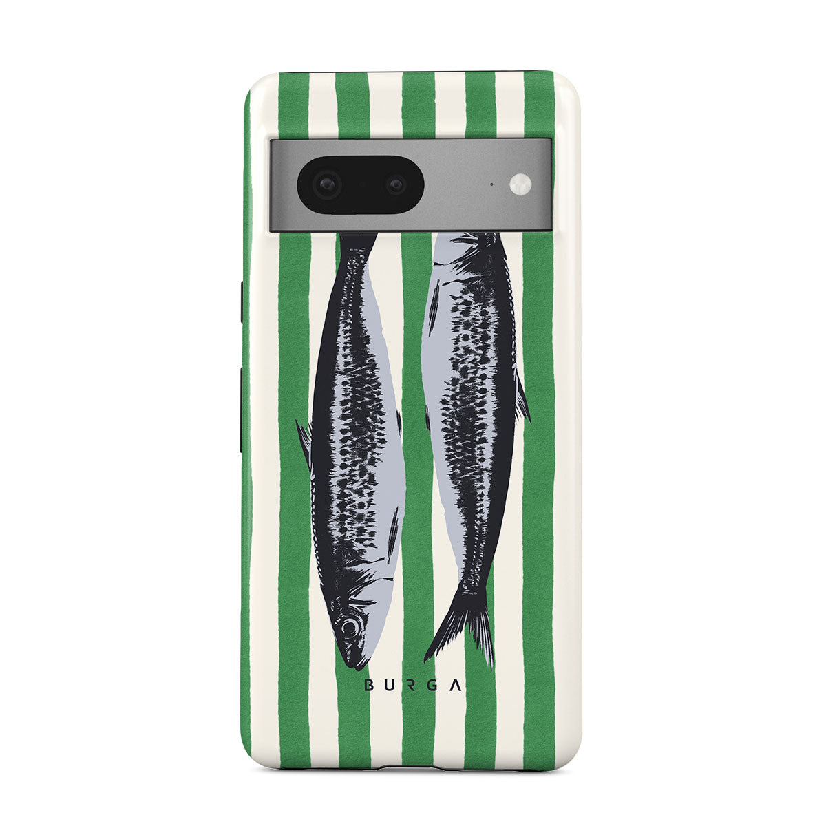 Este design contém:Sardinhas, riscas verdes, motivos oceânicos.