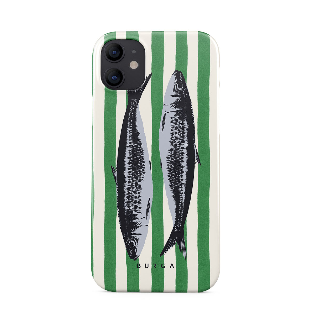 Este design contém:Sardinhas, riscas verdes, motivos oceânicos.