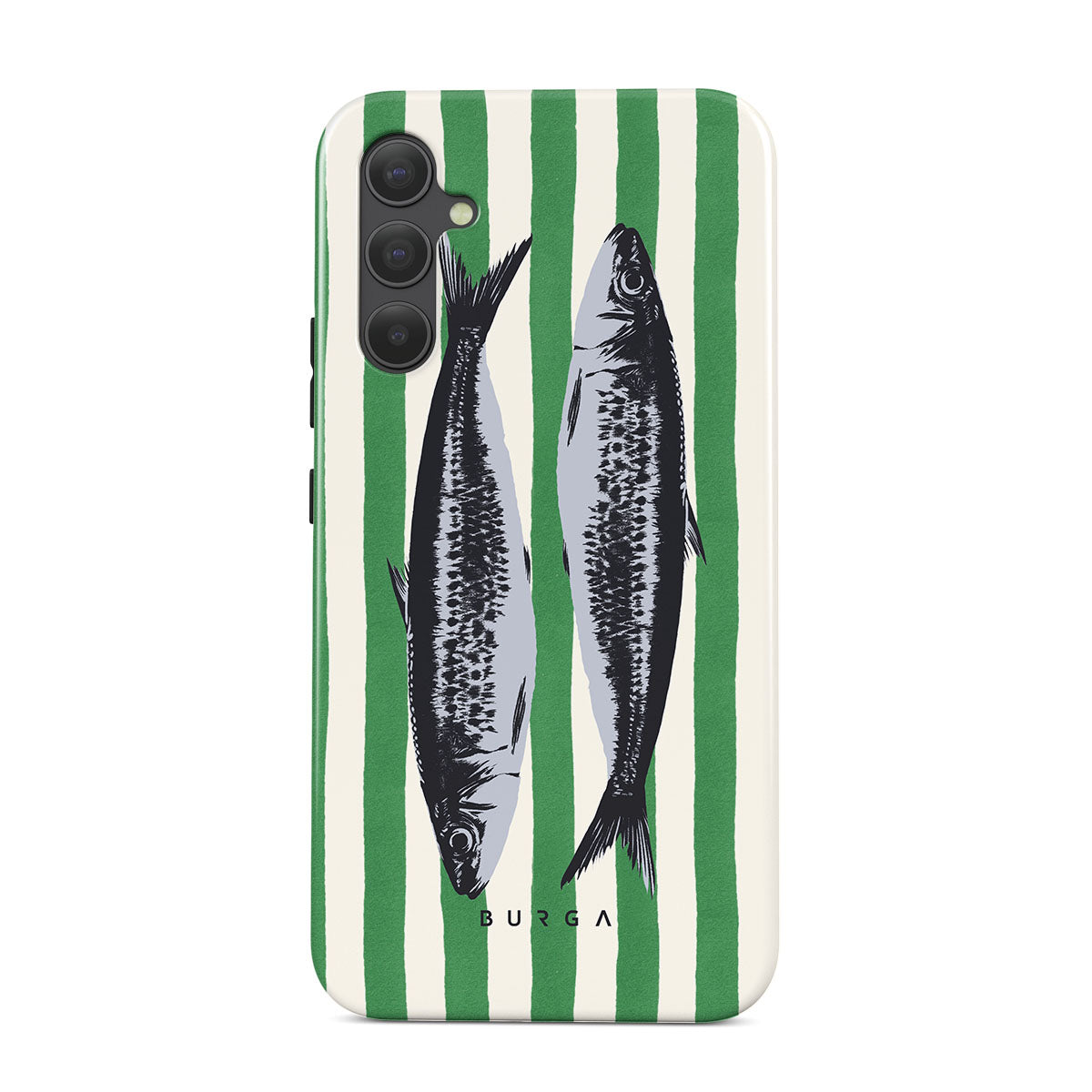 Este design contém:Sardinhas, riscas verdes, motivos oceânicos.