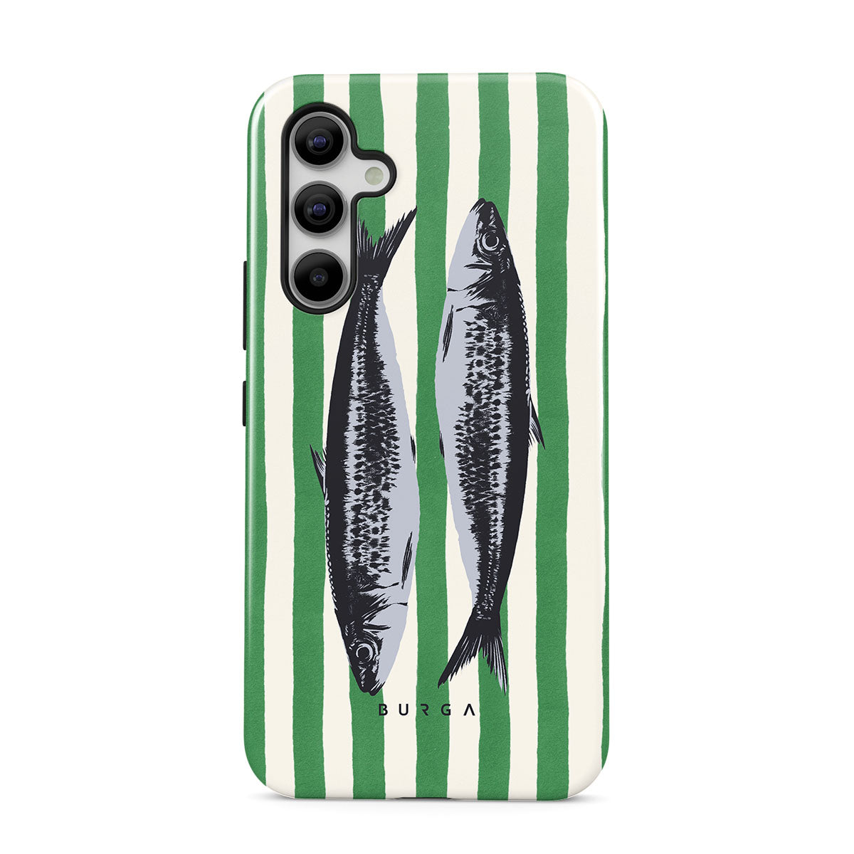 Este design contém:Sardinhas, riscas verdes, motivos oceânicos.