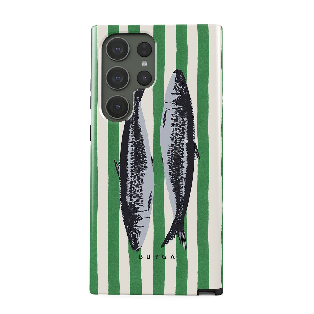 Este design contém:Sardinhas, riscas verdes, motivos oceânicos.