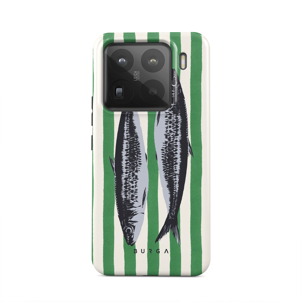 Este design contém:Sardinhas, riscas verdes, motivos oceânicos.