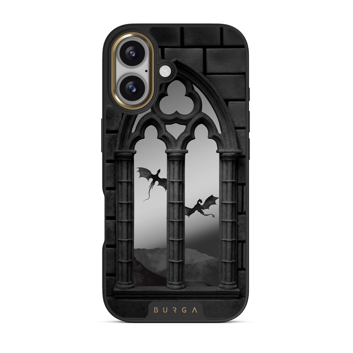 Este design contém: arcos góticos, dragões voadores, criaturas místicas, inserção de espelho