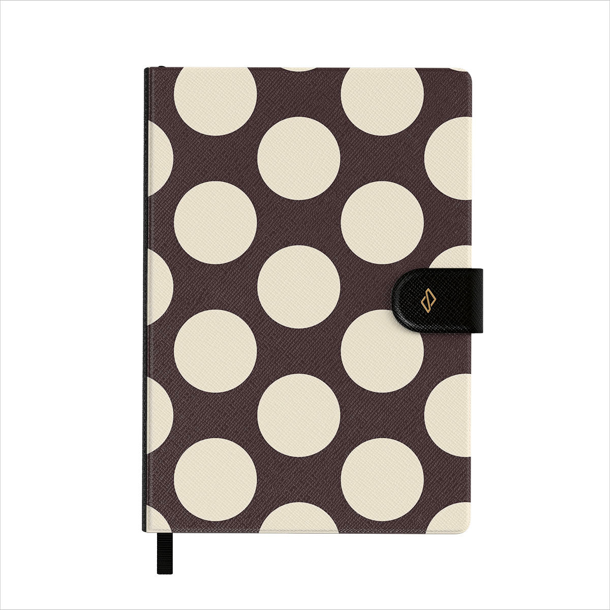 Este design contém: grandes bolinhas creme sobre fundo escuro.