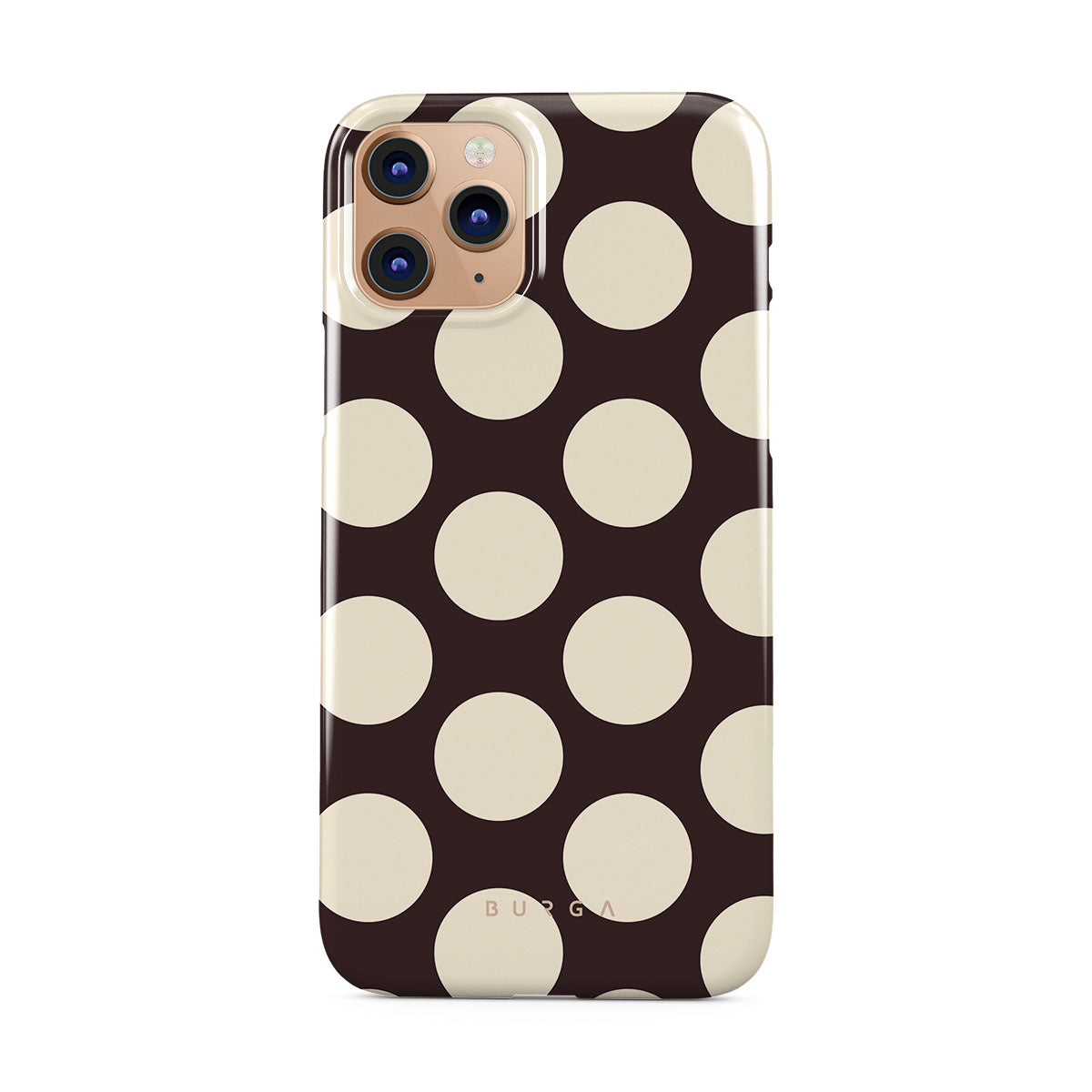 Este design contém: grandes bolinhas creme sobre fundo escuro.