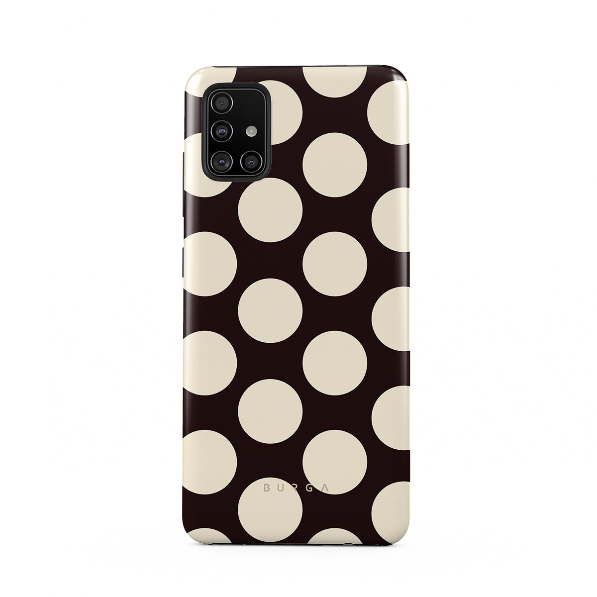 Este design contém: grandes bolinhas creme sobre fundo escuro.