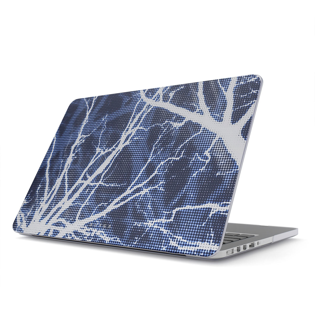 Este design contém: azul, galhos de árvores, natureza, padrão geométrico, minimalista