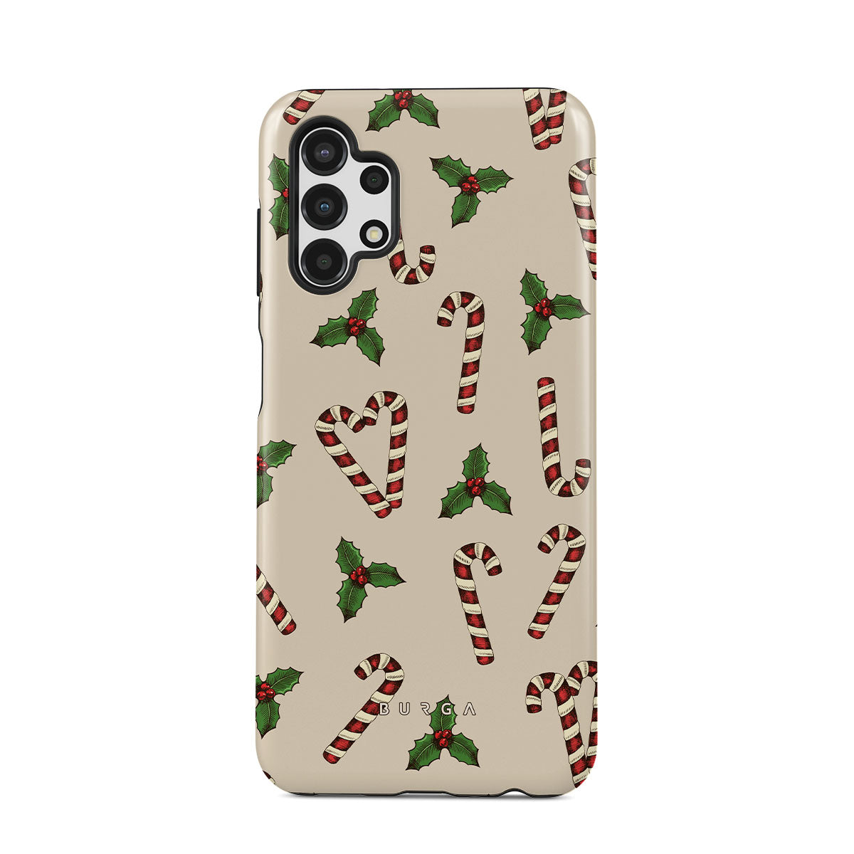 Este design contém: bengalas doces, azevinho, verde, branco, padrão festivo.