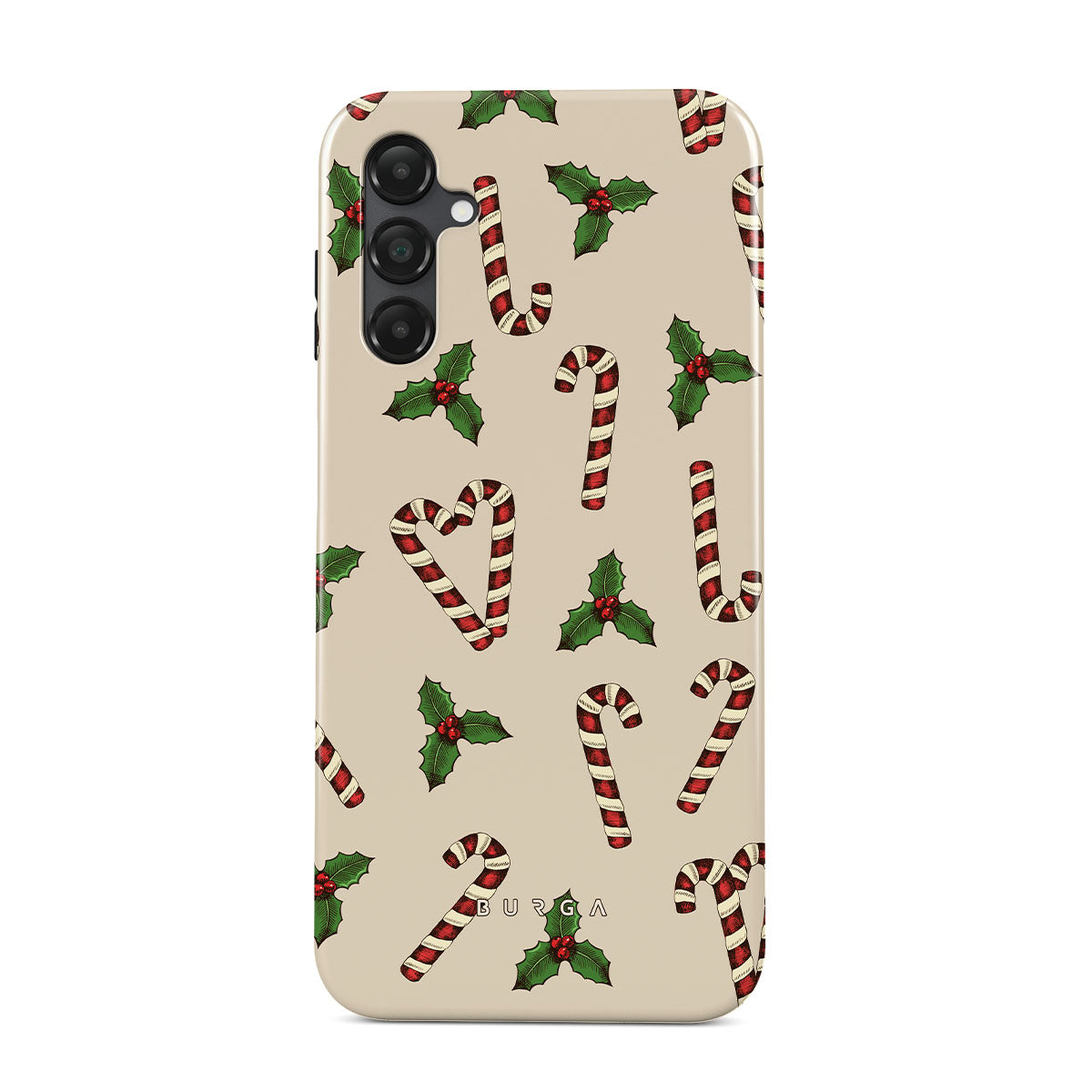 Este design contém: bengalas doces, azevinho, verde, branco, padrão festivo.