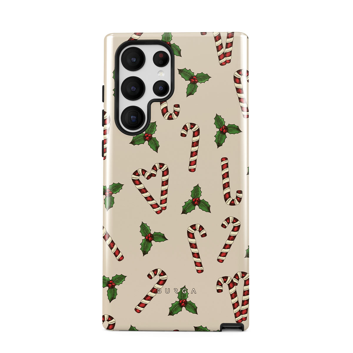 Este design contém: bengalas doces, azevinho, verde, branco, padrão festivo.