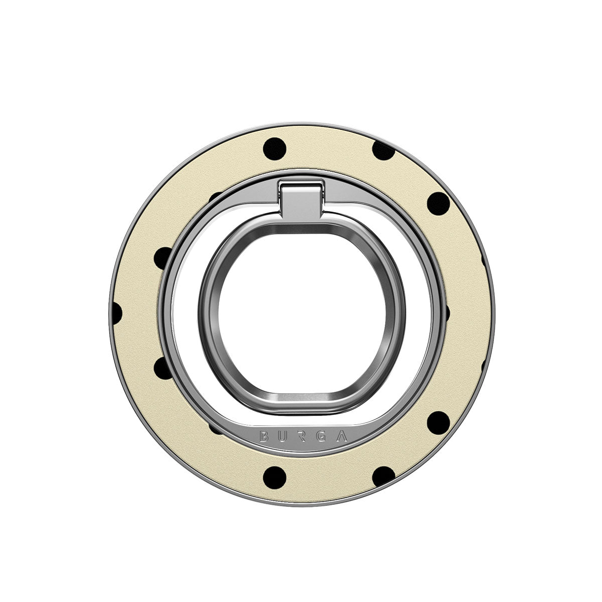 Este suporte em anel magnético encaixa-se no lugar com um clique satisfatório, sem adesivos, sem complicações. Usa-o como pega para fazer scroll com uma mão, um suporte para conteúdo mãos-livres ou uma peça de destaque que combina perfeitamente com a tua capa BURGA.