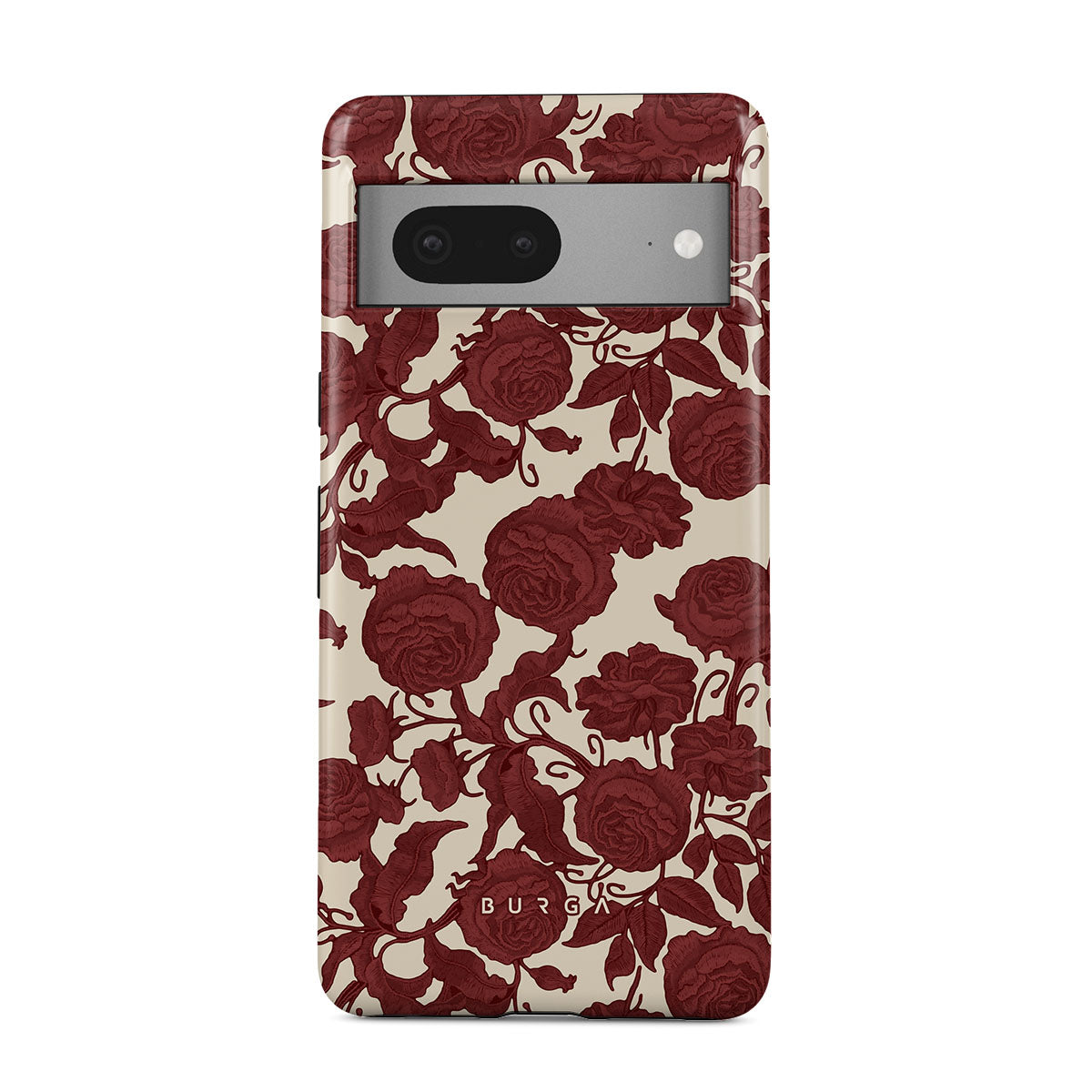 Este design contém: rosas vermelhas escuras, padrão floral intrincado, padrão vintage.