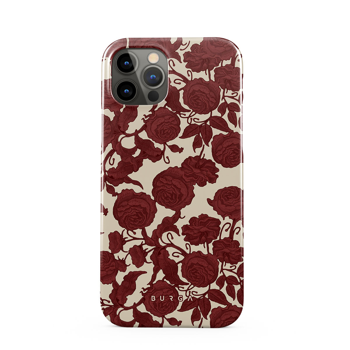 Este design contém: rosas vermelhas escuras, padrão floral intrincado, padrão vintage.